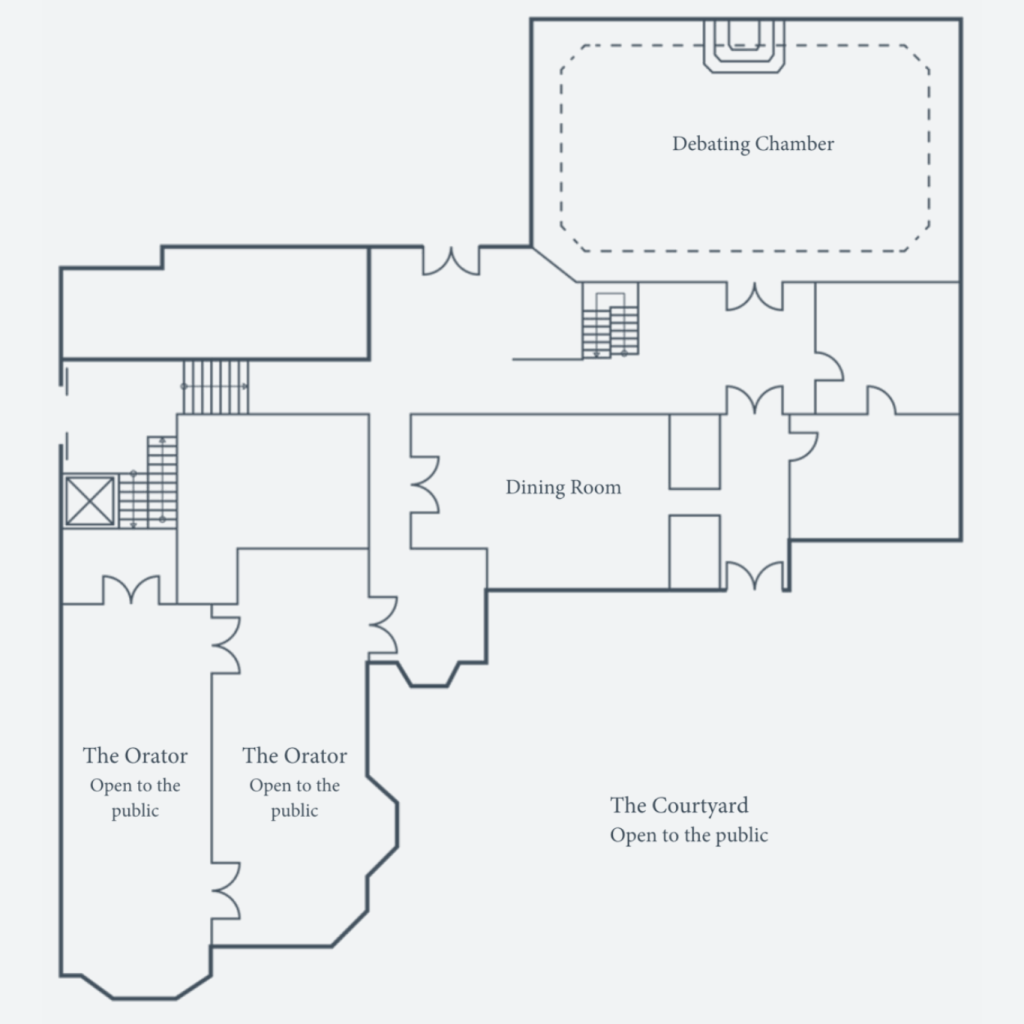 Sir Alfred Waterhouse designed a debating chamber with a clubhouse surrounding it, which would provide members with an excellent large meeting hall and a range of facilities where they could spend their time during the day. The first building was finished in 1866 and extended over several years to provide not just the Debating Chamber, but extensive libraries, games rooms, dining facilities and members rooms