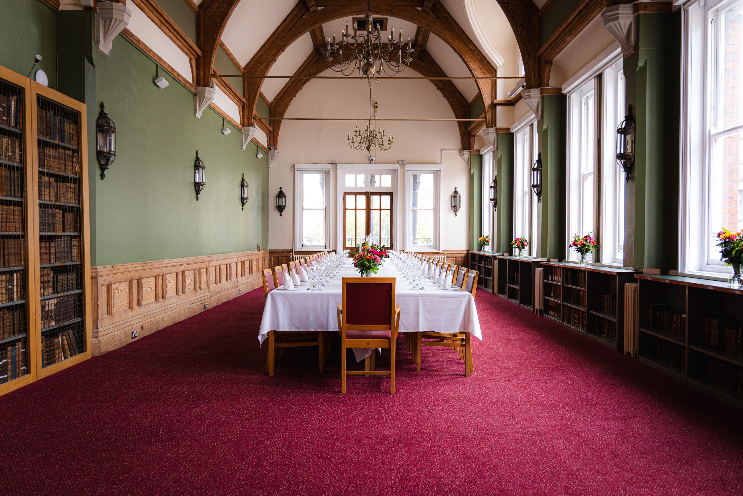 The room offers a versatile space with high arched ceilings and large windows. Located on the first floor with adjoining access to the Keynes Library, acessible by both stairs and lift, The Fairfax Rhodes reading room can be used for dinners, receptions, and presentations. Combined with the Keynes Library, the rooms are ideal for events that require additional space for catering. Tables and chairs can be moved to create a variety of space and setups.