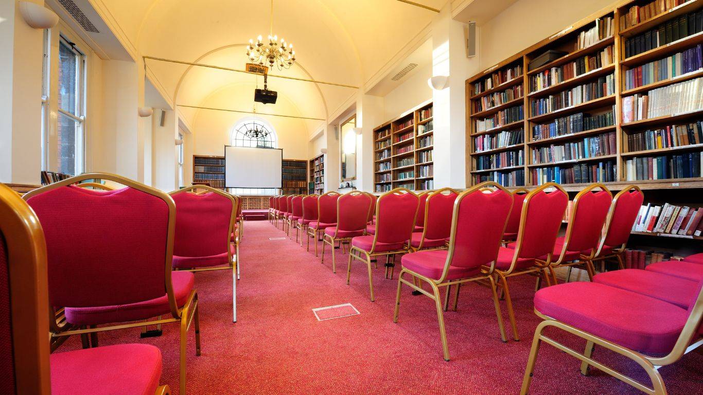 This beautiful room boasts lots of natural light with views of our Courtyard, St John's Chapel and the 12th century Round Church. Located on the first floor, the Keynes Library is accessible by both stairs and lift, the room includes an in-built stage with flexible facilities and room layouts for meetings, drinks, buffets and wedding ceremonies. AV capabilities include a PA system, and built-in screen & projector.